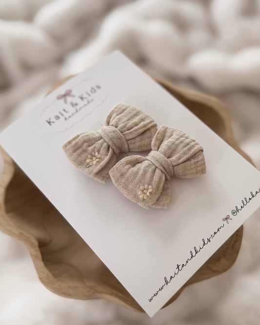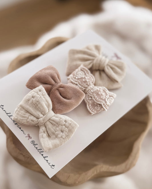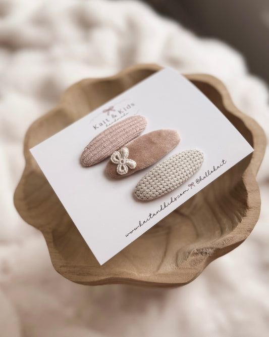 Florence beige mini classic ♡ headband / clip / piggy set