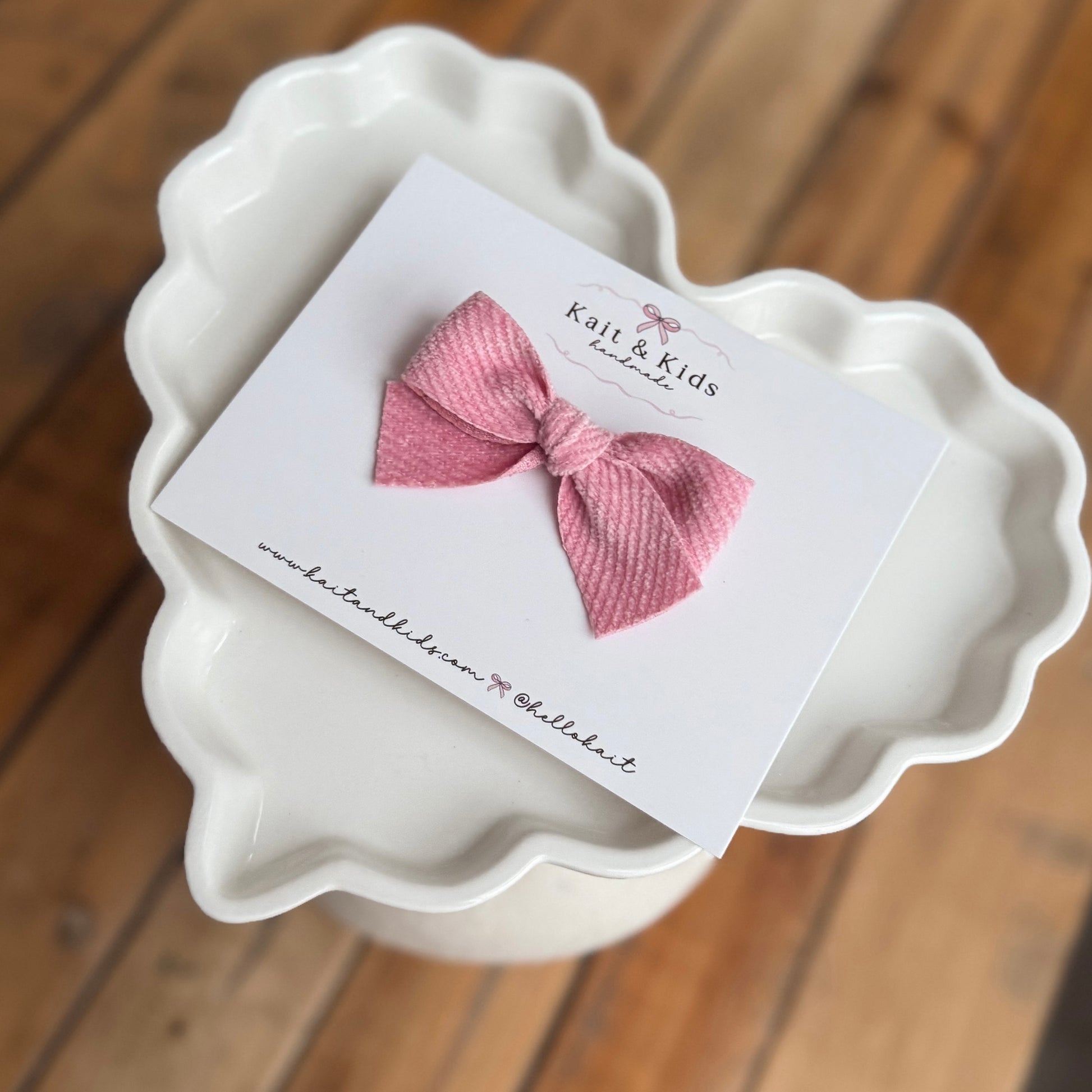 Soft deep pink velvet mini classic ♡ headband / clip / piggy set