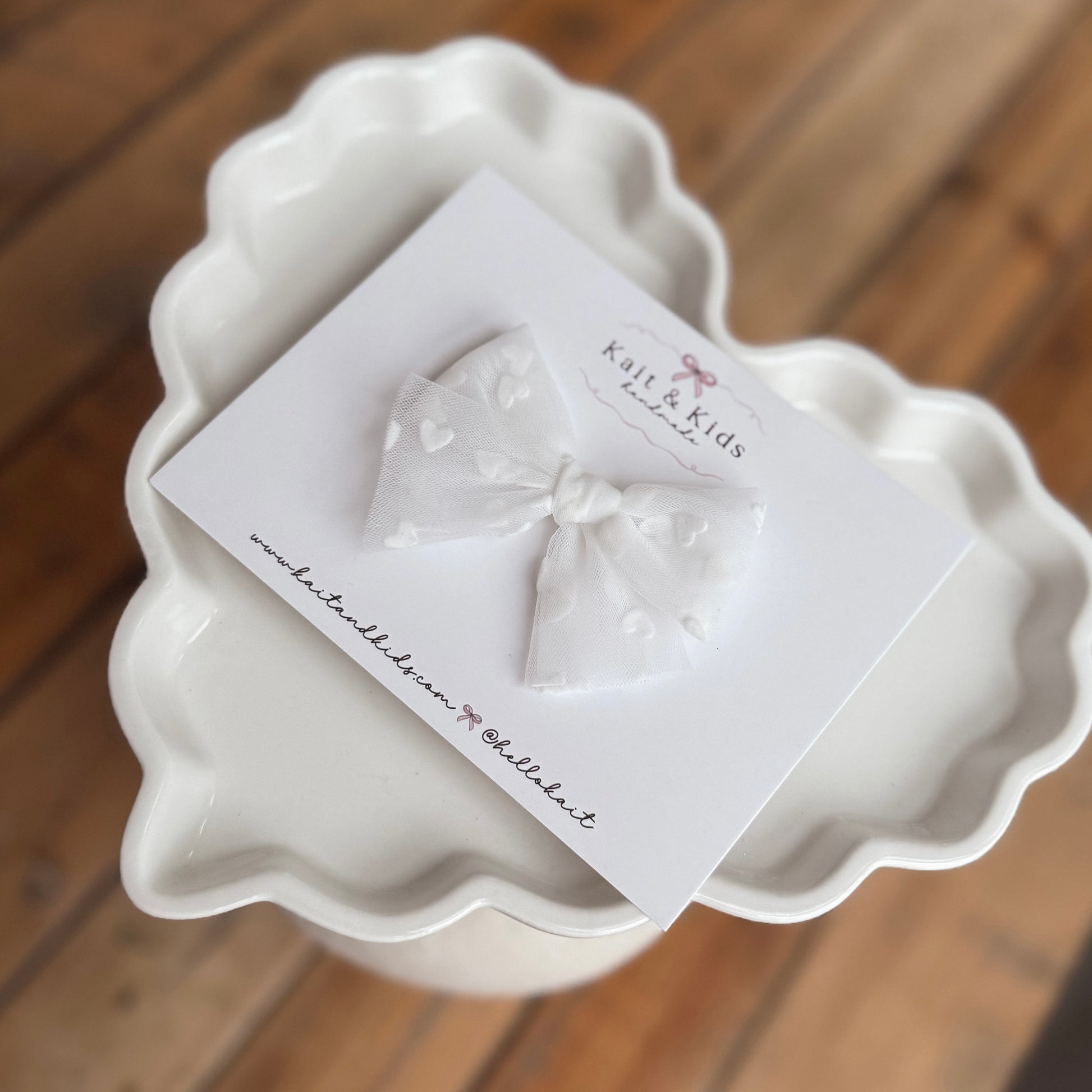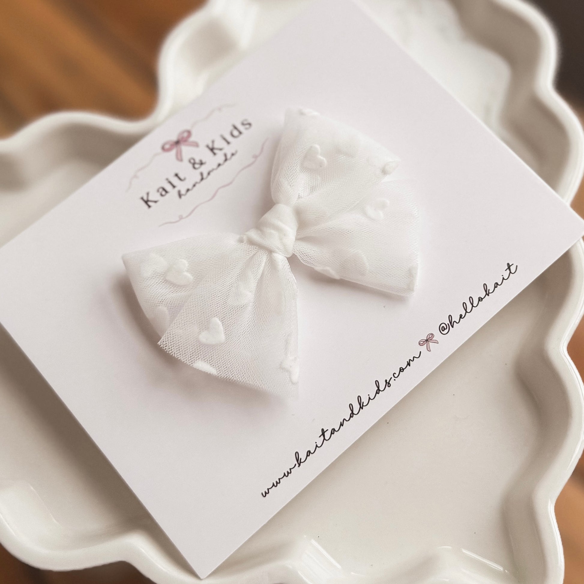 White heart mesh ♡ headband / clip / piggy set